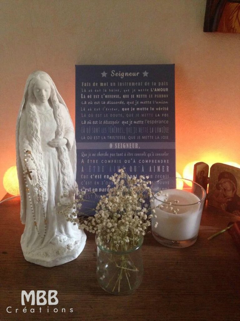 Pour y participer, il vous suffit de cliquer sur le bouton « J’aime »  en bas de ce post pour tenter de gagner la toile prière MBB Créations de votre choix ! Le tirage au sort aura lieu le lundi de Pâques (21 avril) !