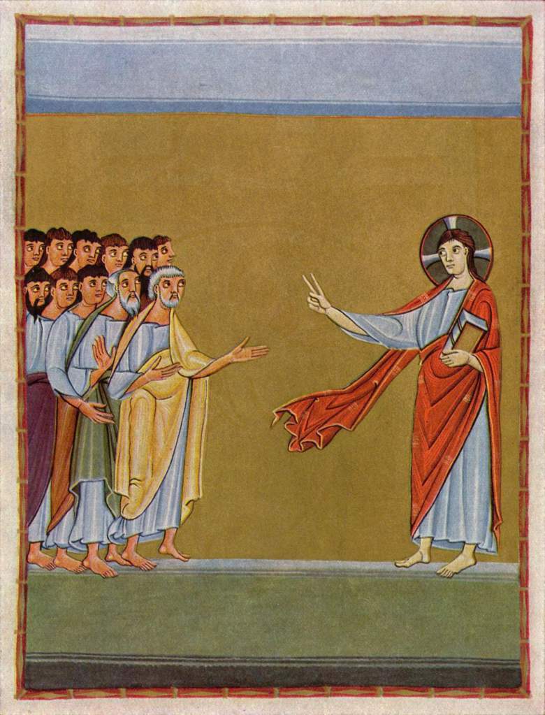 2- Jésus demande aux femmes d’envoyer les disciples en Galilée où ils le verront de leurs propres yeux. C’est là qu’il apparaît aux disciples pour leur donner les instructions que l’on appelle souvent « la grande mission » (versets 16 à 20).