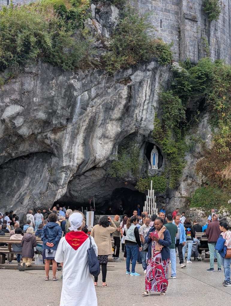 Puis nous voilà reparties pour prier le chapelet (en français) en face de l’entrée de la grotte de Massabielle.