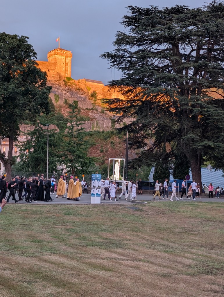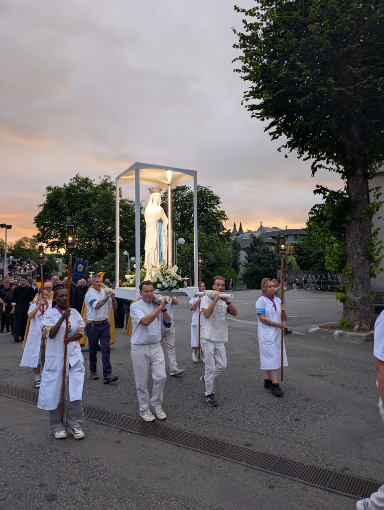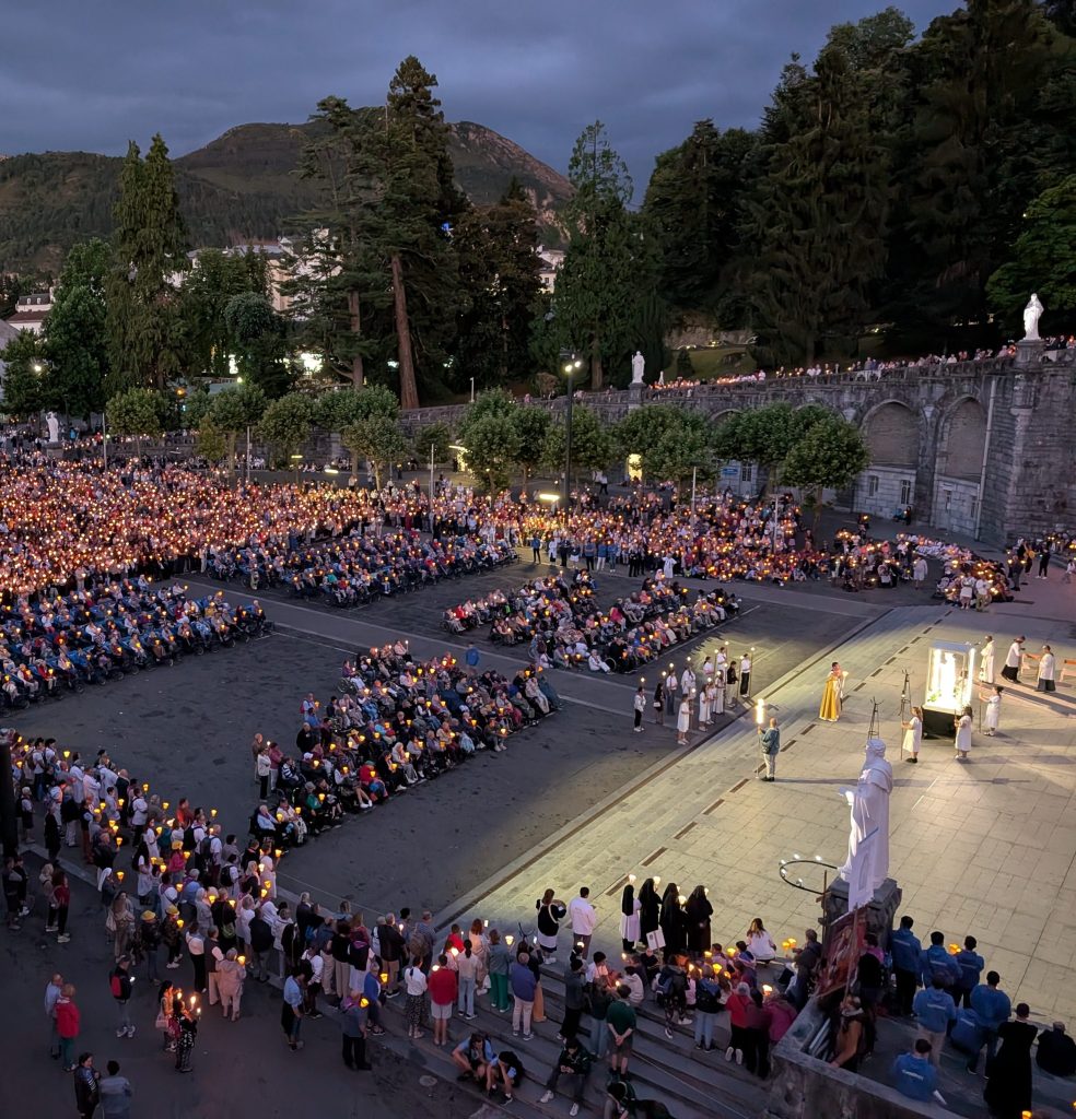 Notre journée s’est terminée avec la procession aux flambeaux appelée aussi procession mariale, qui était très émouvante. Avec des pèlerins originaires des quatre coins du monde, priant le chapelet et chantant l’Ave Maria de Lourdes, nous avons été invités à suivre et porter la lumière du Christ pour raviver notre foi et fortifier notre espérance.
