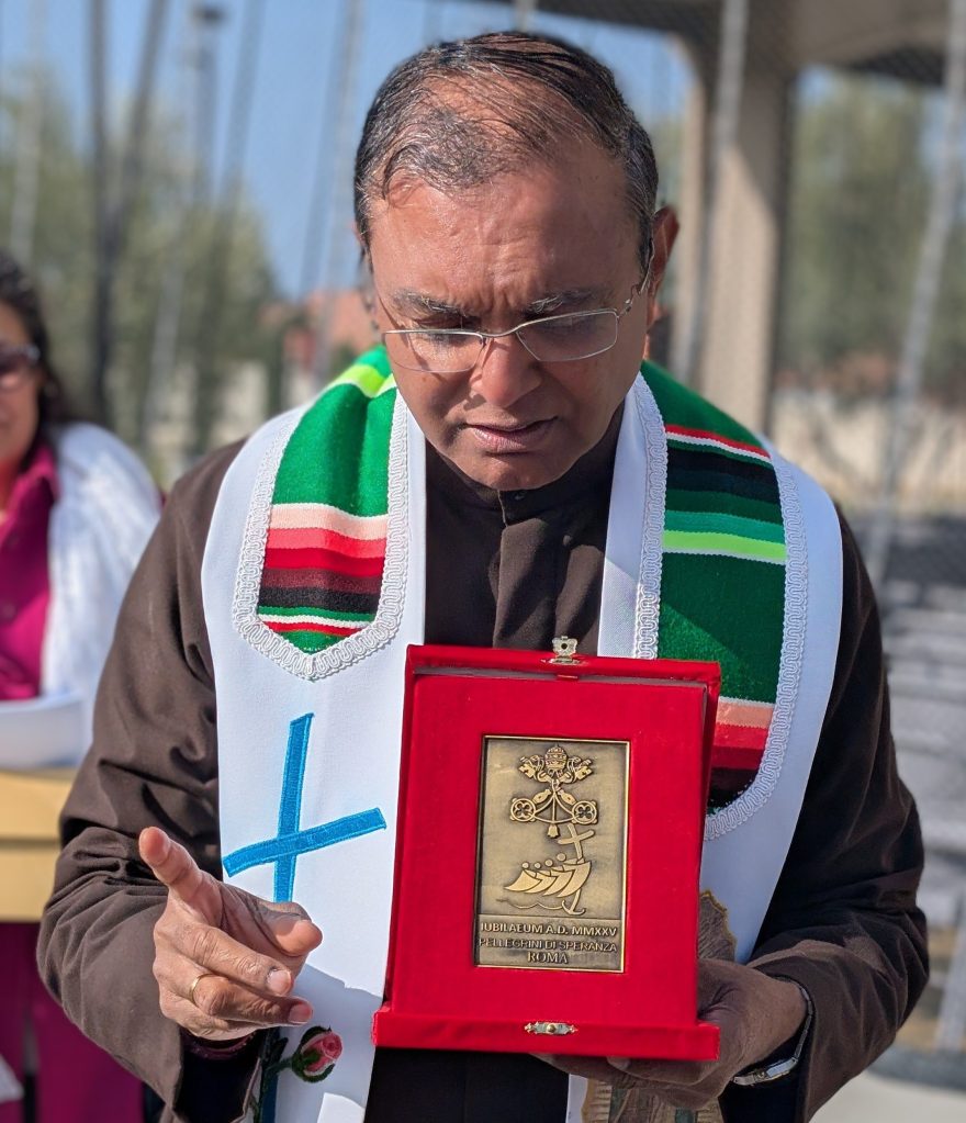 C’est ce que j’ai vécu avec mon groupe de Bible Study début décembre. Nous avons pu nous confesser et participer à la messe. Puis nous nous sommes retrouvées dans le sanctuaire désigné dans notre ville par notre diocèse. Le prêtre a commencé par partager son expérience de pèlerinage à Rome en octobre dernier et nous a expliqué la signification du logo du Jubilé 2025.